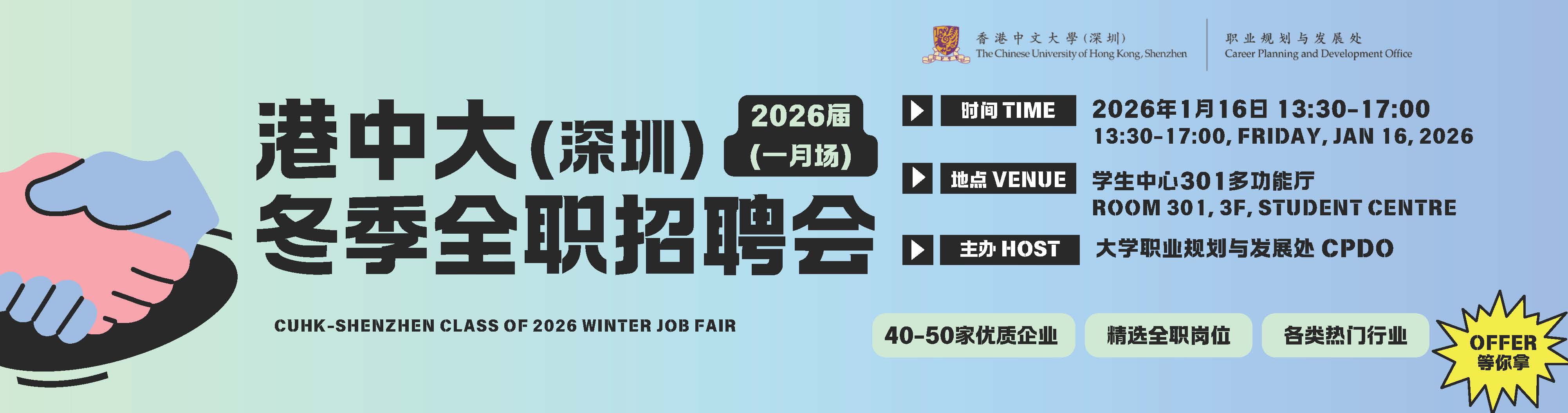 百万英才汇南粤——港中大(深圳)2026 届冬季校园招聘