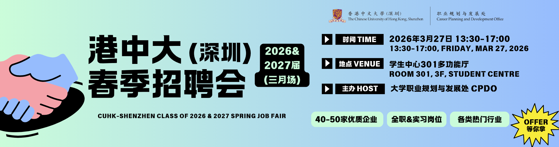 百万英才汇南粤——港中大(深圳)春季招聘会(三月场)