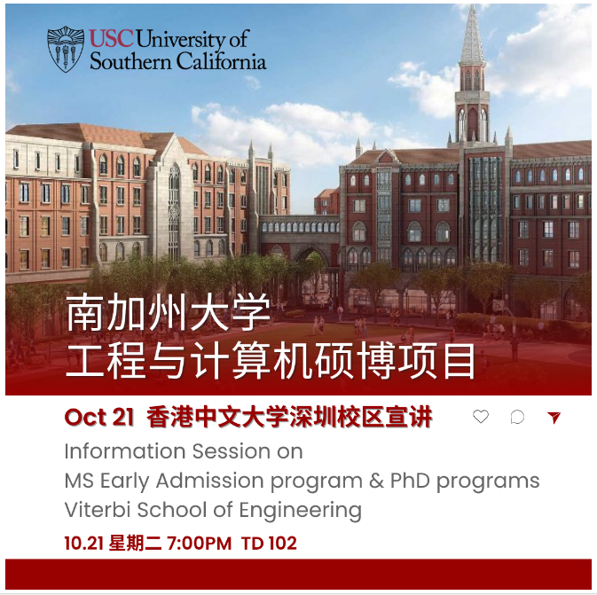 宣讲会:南加州大学Viterbi工学院硕士项目早申计划及博士项目