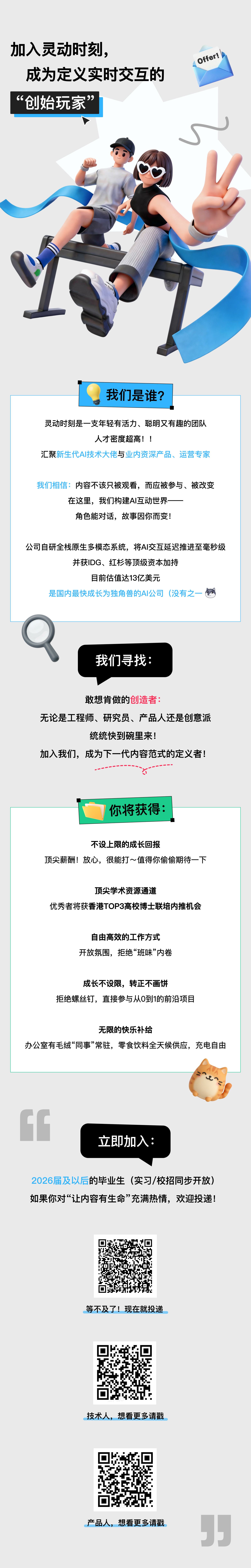 灵动时刻是一家全球领先的原生多模态技术公司,致力于提供实时交互式内容的全球基建。公司成立10个月内已完成5轮融资,估值超过13亿美元,投资方为IDG、红杉等顶级美元基金,是国内最快成长为独角兽的AI企业。