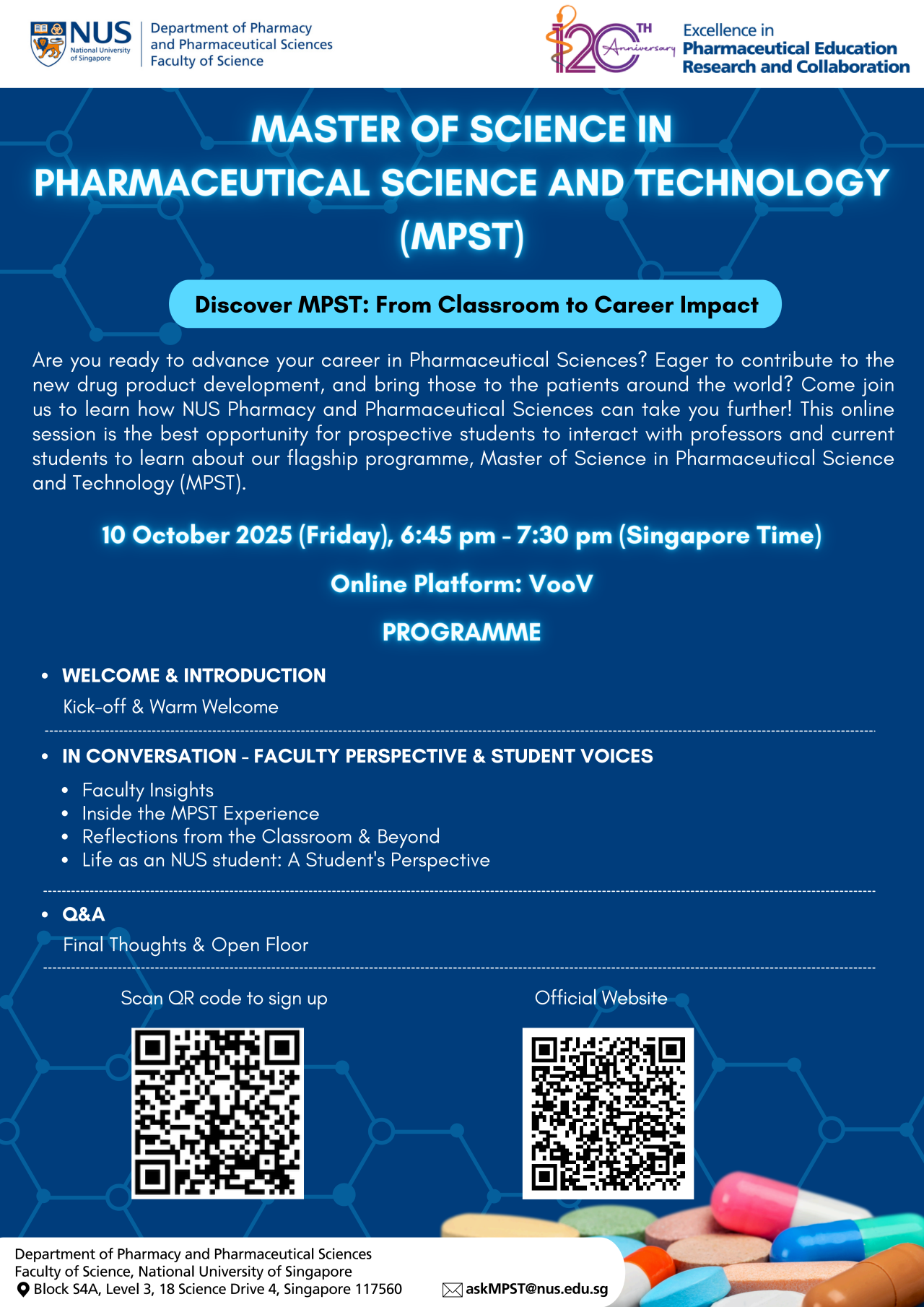 【院校宣讲】新加坡国立大学制药科学与技术硕士项目