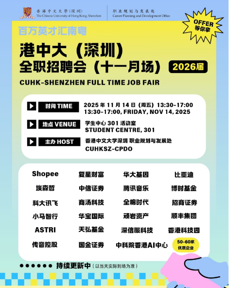 百万英才汇南粤——港中大(深圳)2026 届秋季招聘会