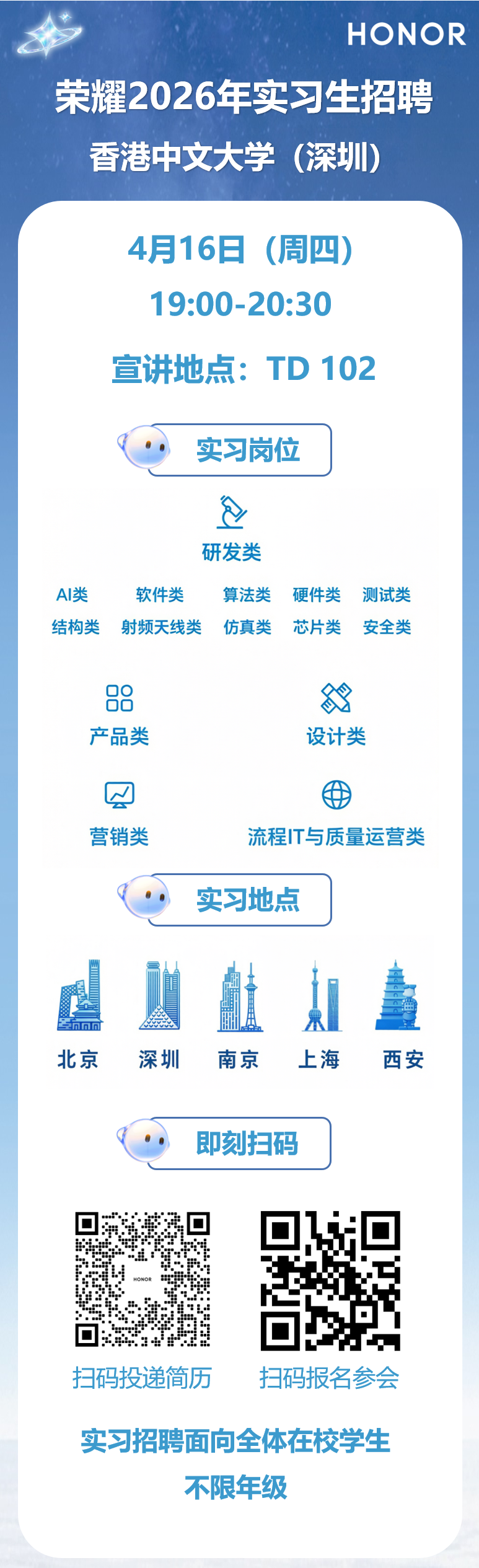 逐梦计划 | 荣耀26年实习生招聘宣讲会(港中深专场)